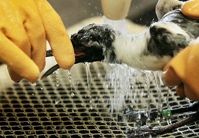 Buras, US: Oil from the Deepwater Horizon spill is cleaned from a gull at the Fort Jackson Oiled wildlife rehabilitation centre in Louisiana