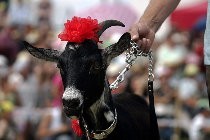 Ramygala, Lithuania: A goat called Naomi is shown off during a goat parade